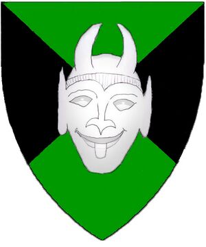 ![]() Per saltire vert and sable, a demon's head caboshed argent. | ||||||||||