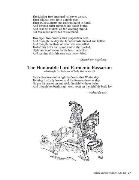 Crown Poems for Spring Crown Tourney 2018, presented at the Coronation of Agrippa III and Dawid in June 2018. All copyright is retained by the original authors.