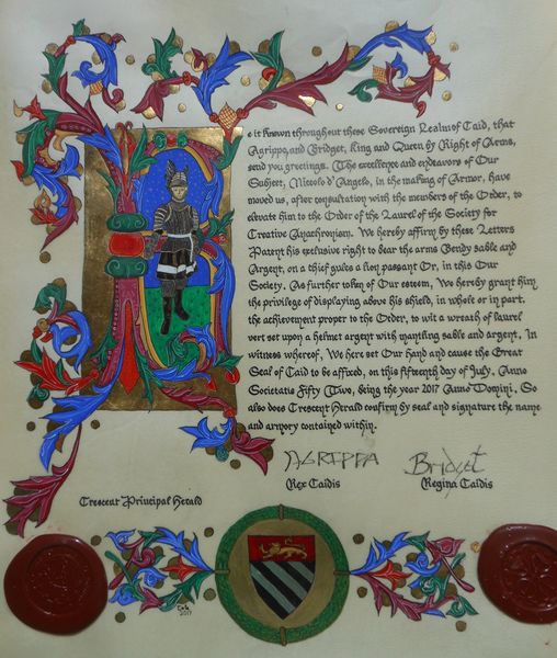 Laurel scroll for Niccolo d'Angelo, Scroll by Tetchubah of Greenlake