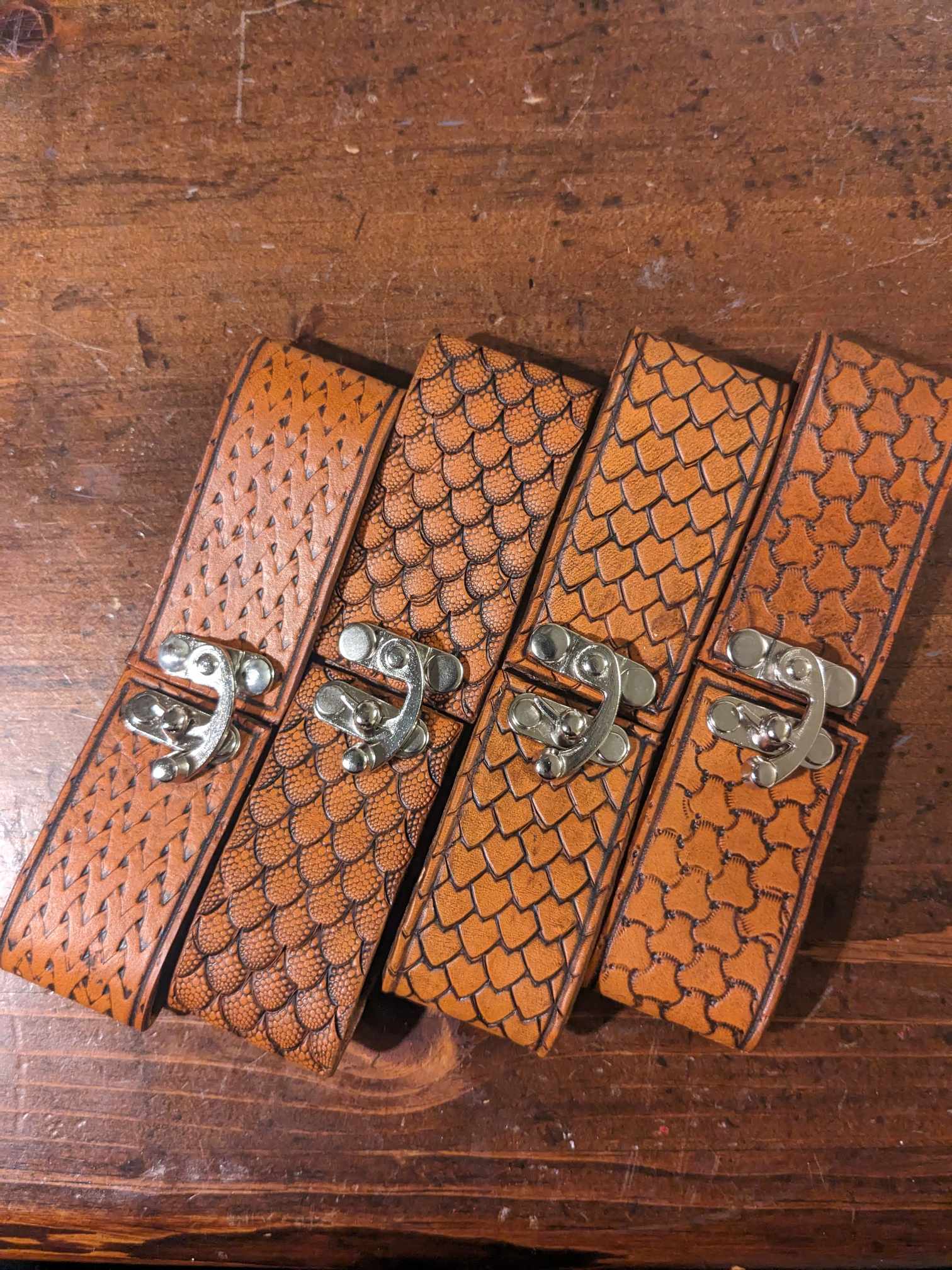 File:Mug holders leather stamped largesse.jpg