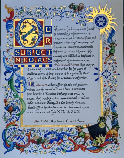 | current | 21:27, 28 November 2025 | 1,973 × 2,501 (11.55 MB) | Bruce Draconarius (talk | contribs) | Mark scroll for Nikolaos Phaistios, Scroll by Caterina Sanzio. Category:All Scrolls Category:Mark Scrolls Category:Scrolls Completed 2025 Category:2025 Scrolls |