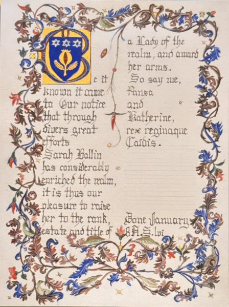 | current | 19:31, 28 November 2025 | 1,997 × 2,669 (11.6 MB) | Bruce Draconarius (talk | contribs) | AoA scroll for Sarah Ballin, Scroll by Delfina de Cubells. Category:All Scrolls Category:AoA Scrolls Category:Scrolls Completed 2025 Category:2022 Scrolls |