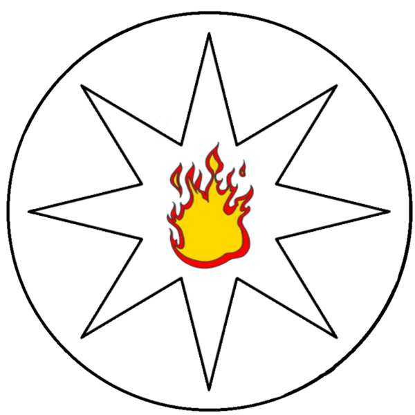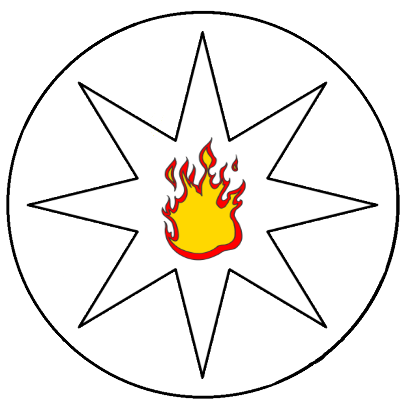 Starkhafn Champions official Badge with the original flame. Description from the OSCAR: The following badge associated with this name was registered in June of 2012 (via Caid): (Fieldless) On a mullet of eight points argent a flame proper. for baronial champions.
