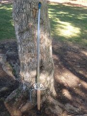 Jerome Robert of McKenna Arms, Argent, a bendlet between in chief a dexter mailed fist from the sinister grasping a cross botonny fitchy and in base a lymphad sails furled and oars in action all gules